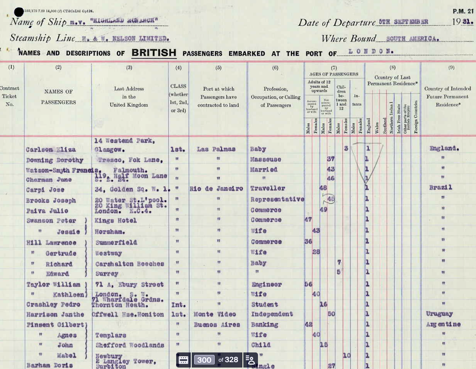 The family also returned to England on the “S.S. Highland Monarch” in June 1931. Gilbert and Agnes had their two children – John Soudon (aged 14) and Mabel Sheila (aged 10) with, and they probably intended to drop John off at school in England, as they returned to Buenos Aires on the same ship without him that.