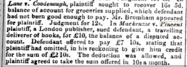 William was back to being a “commercial traveller” when his son Charles married in 1858. Three years later, at the time of the 1861 Census, he was a “book traveller (selling) weekly and monthly prints.” On that occasion, he was on the road again, staying at the Ebrington Inn, in Plymouth. The following year, William was sued in the County Court by his then employer, a Mr. Mackenzie of London for £10 balance on a disputed account. The defendant offered to pay £7 10s, stating that the plaintiff had omitted to give him credit for £2 10s (Western Times: Saturday 13th December 1862). By then William was a widowe. His wife had died in Plymouth in 1855.
