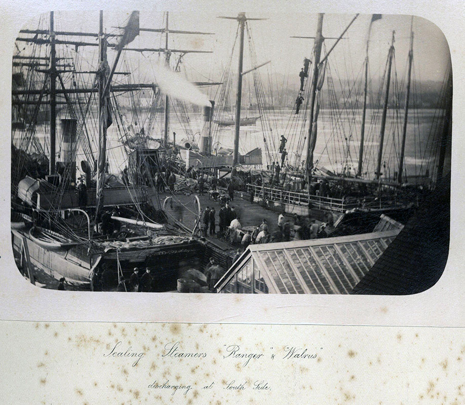 Sealing steamers “Ranger” and “Walrus” discharging at South Side, via the Memorial University of Newfoundland.