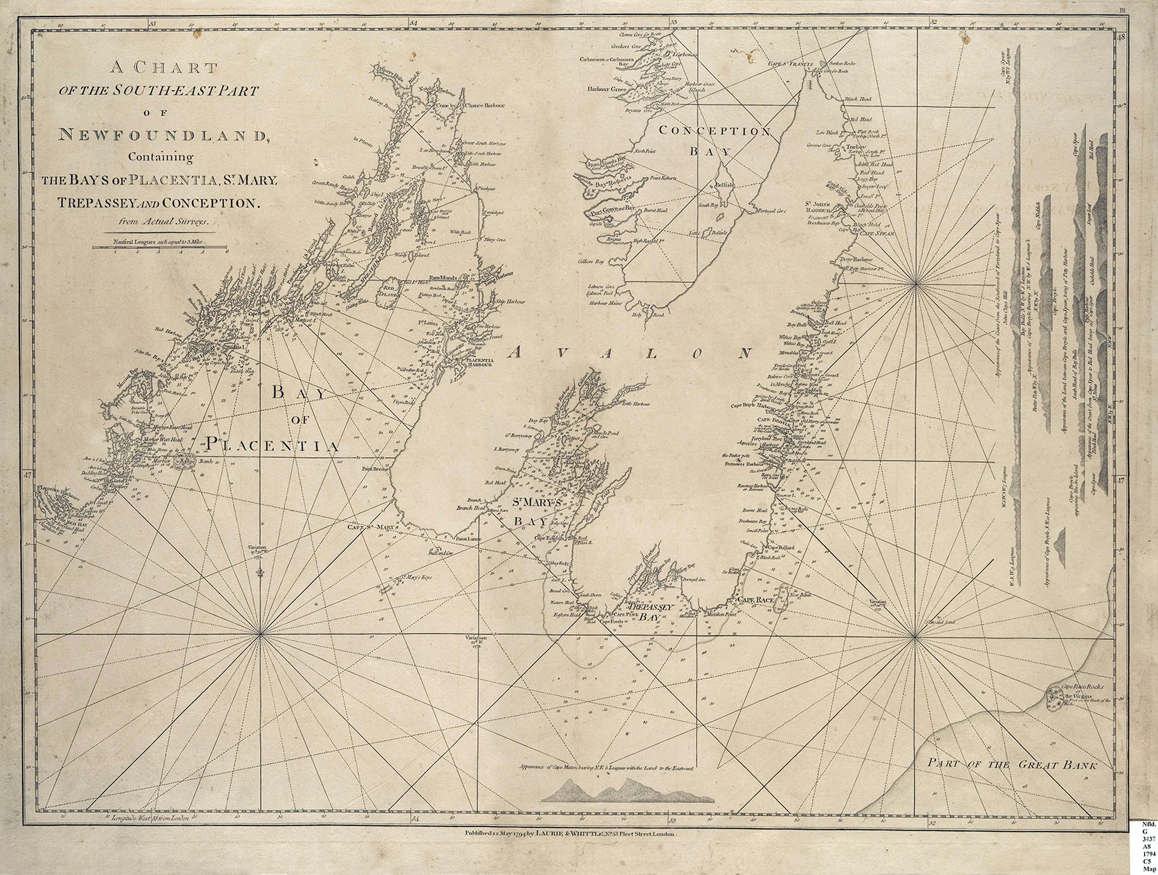 Map of the southeastern part of Newfoundland, 1794, via the Memorial University of Newfoundland.