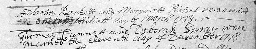 John Pinsent: 1723 – 1800 (Married Elizabeth Puddicombe, 1742, Crediton)